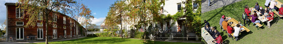 Allgemein zugänglich sind im Kellergeschoss ein Musik-Übungsraum, ein Fitnessraum, eine Schreinerwerkstatt, ein Bastelraum mit Veloreparaturecke, dazu der grosse Gemeinschaftsraum im Ateliertrakt – und natürlich die grosszügigen Aussenräume mit Spielwiese, Kiesplatz (der vor allem für Pétanque genutzt wird), einem Wasser-Spielplatz für die Kleinen und einer Grillstelle.